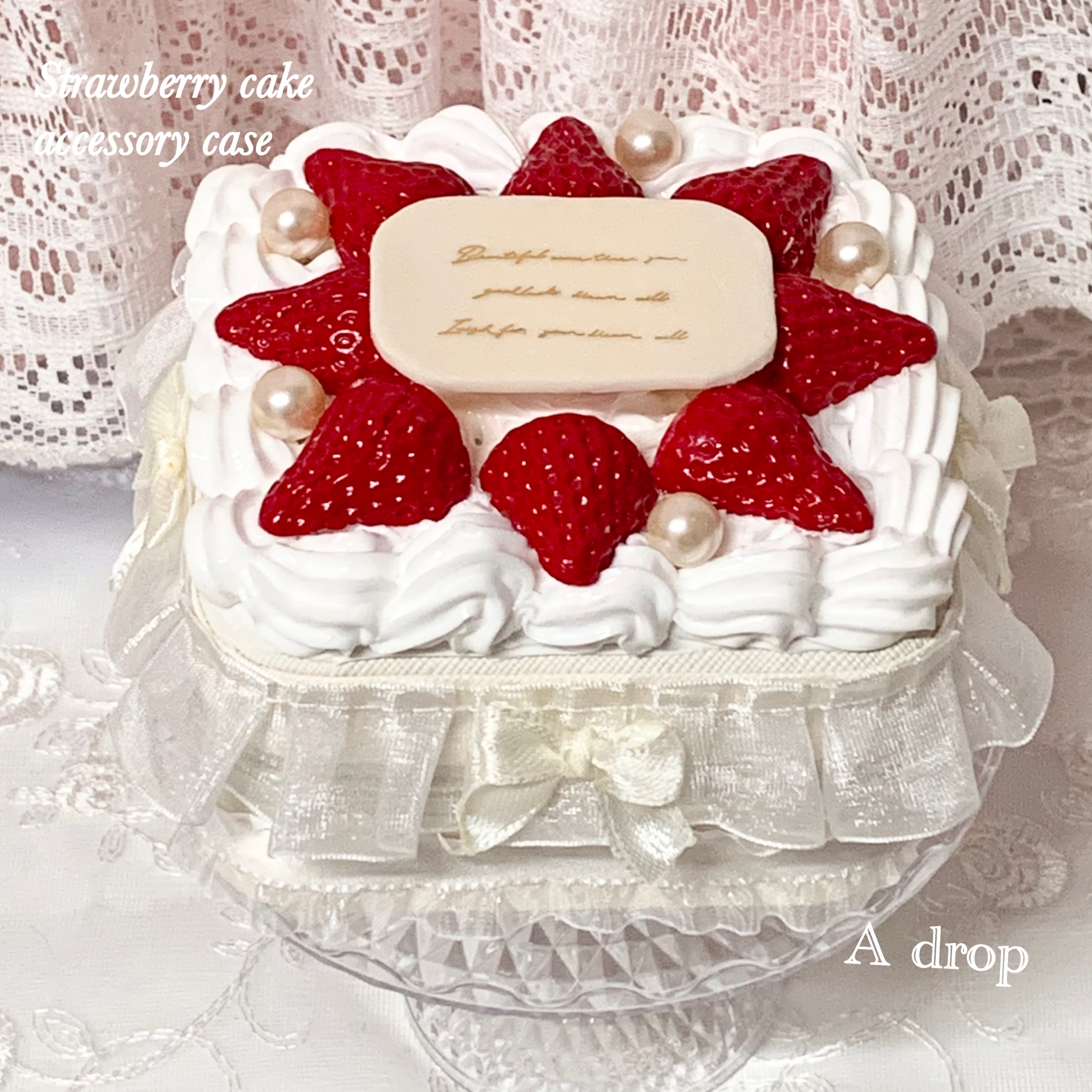 イチゴのケーキをモチーフにしたアクセサリーケースです。
