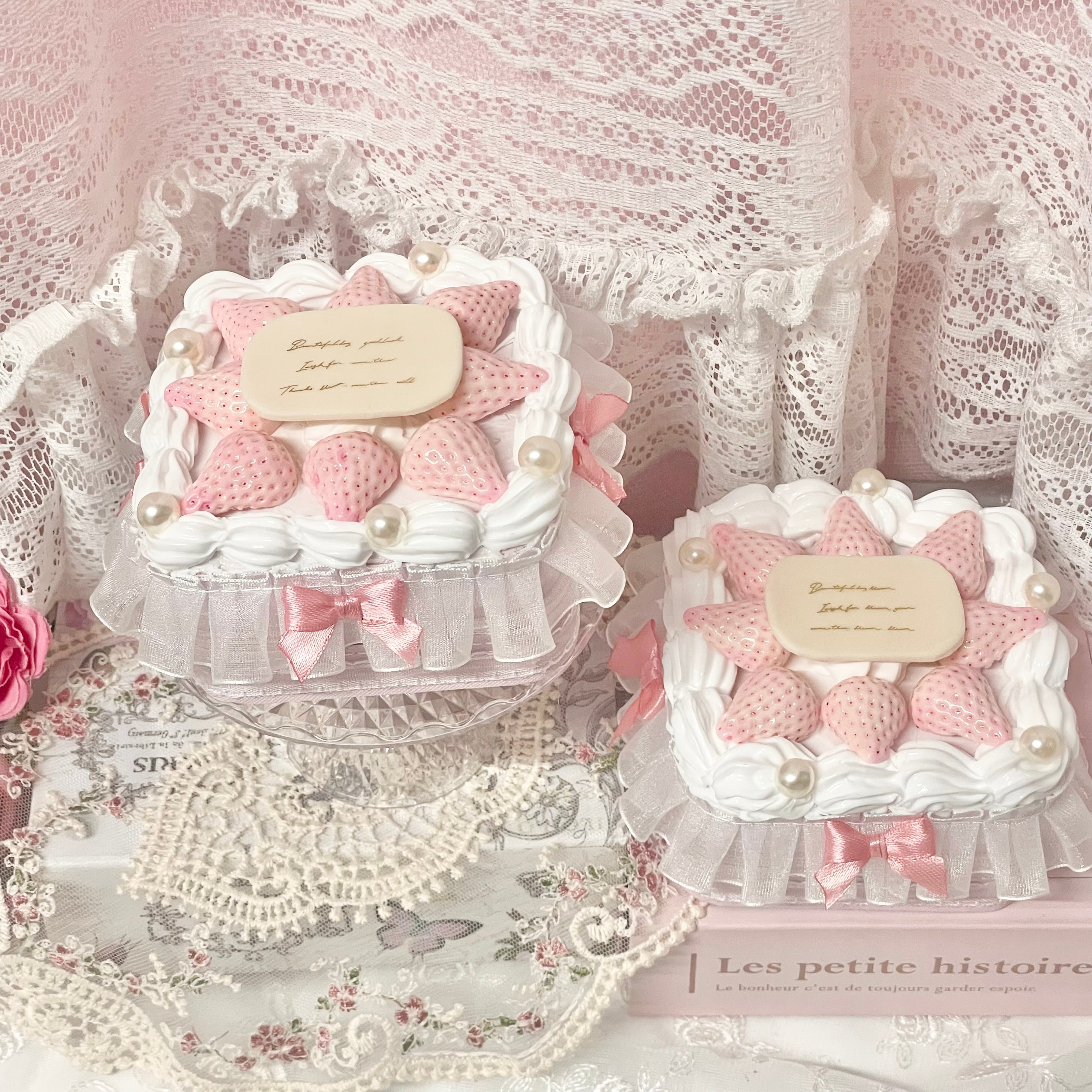 (ハンドメイド フェイクスイーツ いちご 苺 イチゴ ケーキ アクセサリーケース ロリィタ リボン フリル ジュエリーケース)